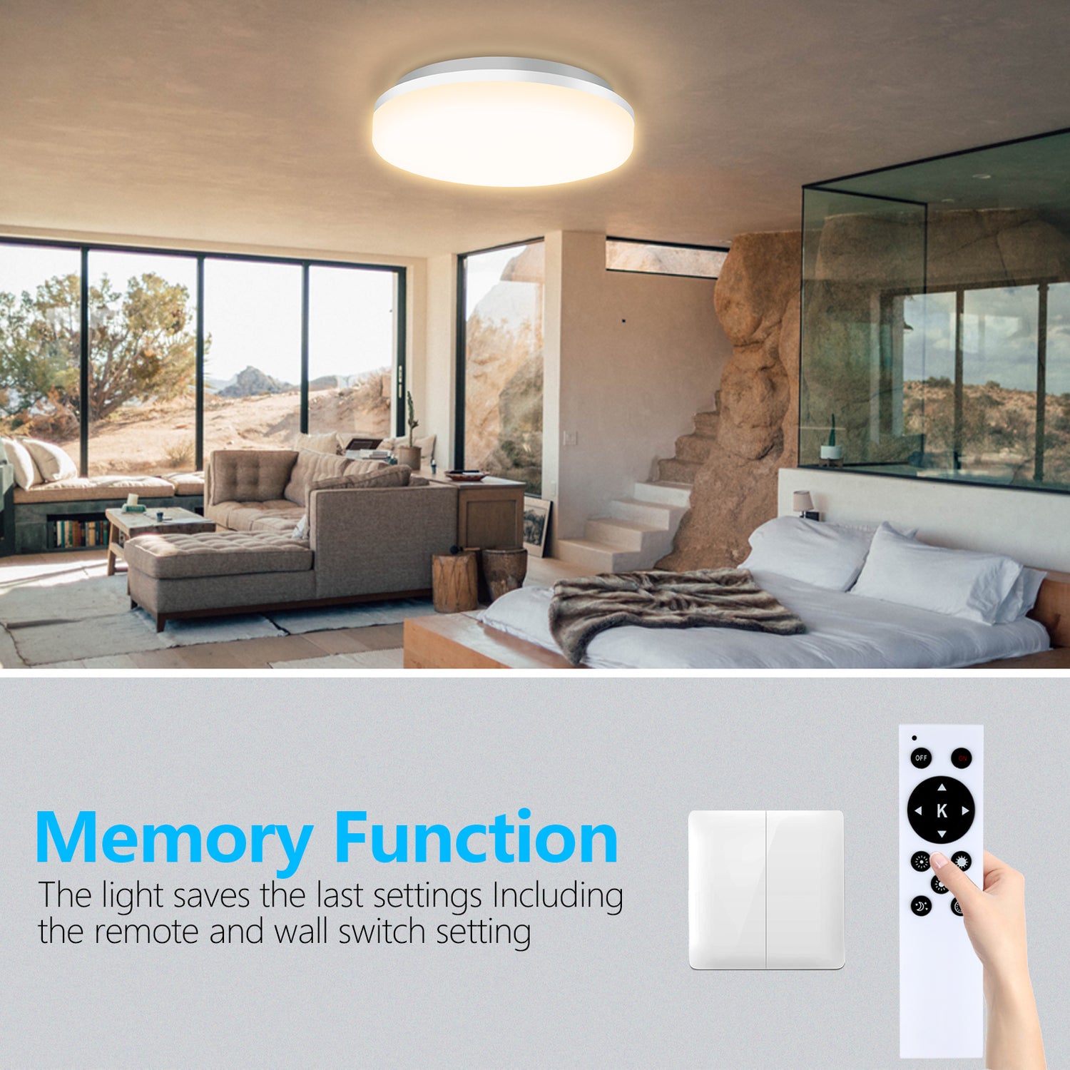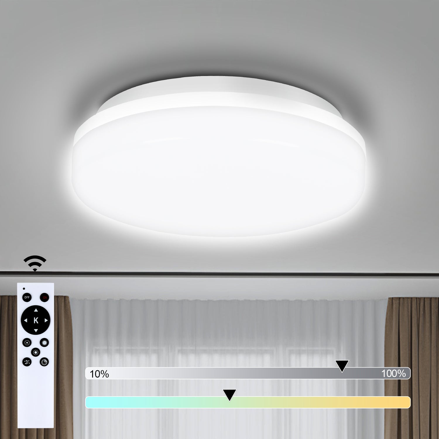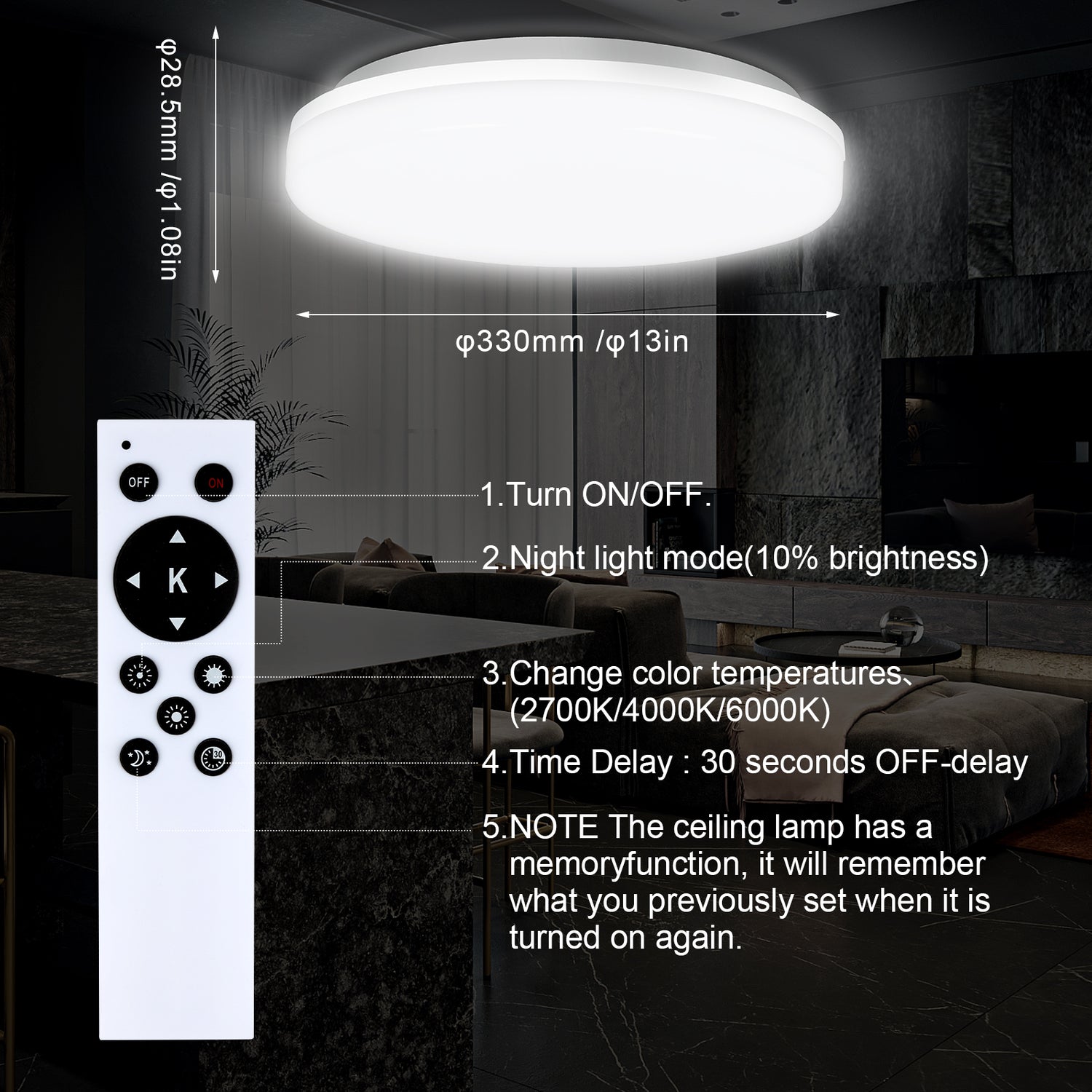 36W Flush Mount LED Ceiling Light for Bathroom, 13 inch Super Slim Ceiling Light with Remote Control 3 Color Changeable 2700/4000/6500K, 3060lm IP44 for Kitchen,Laundry Room, Hallway
