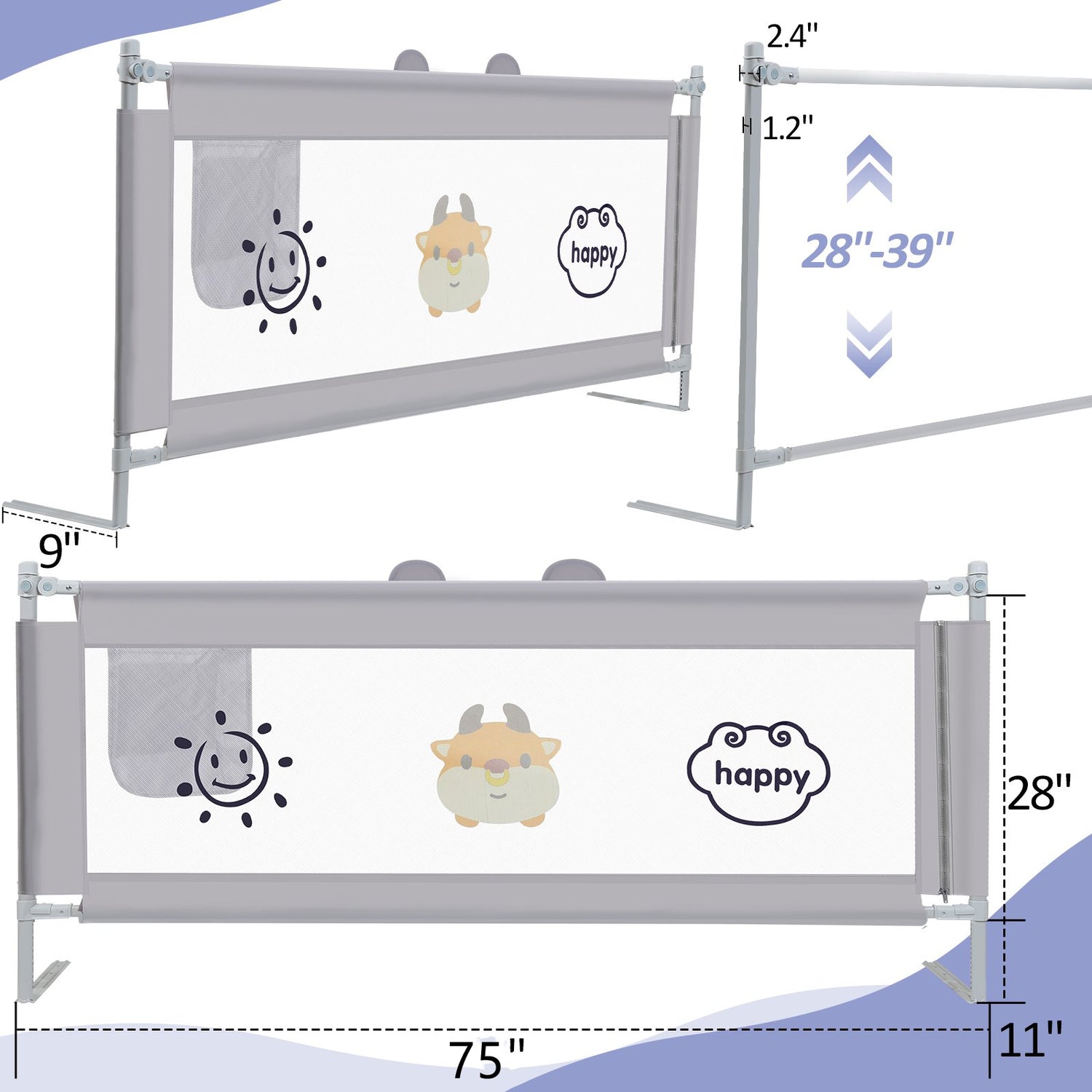 Bed Rails for Toddlers,Crib fence Seamless Lifting Height 75" x 28"-39"