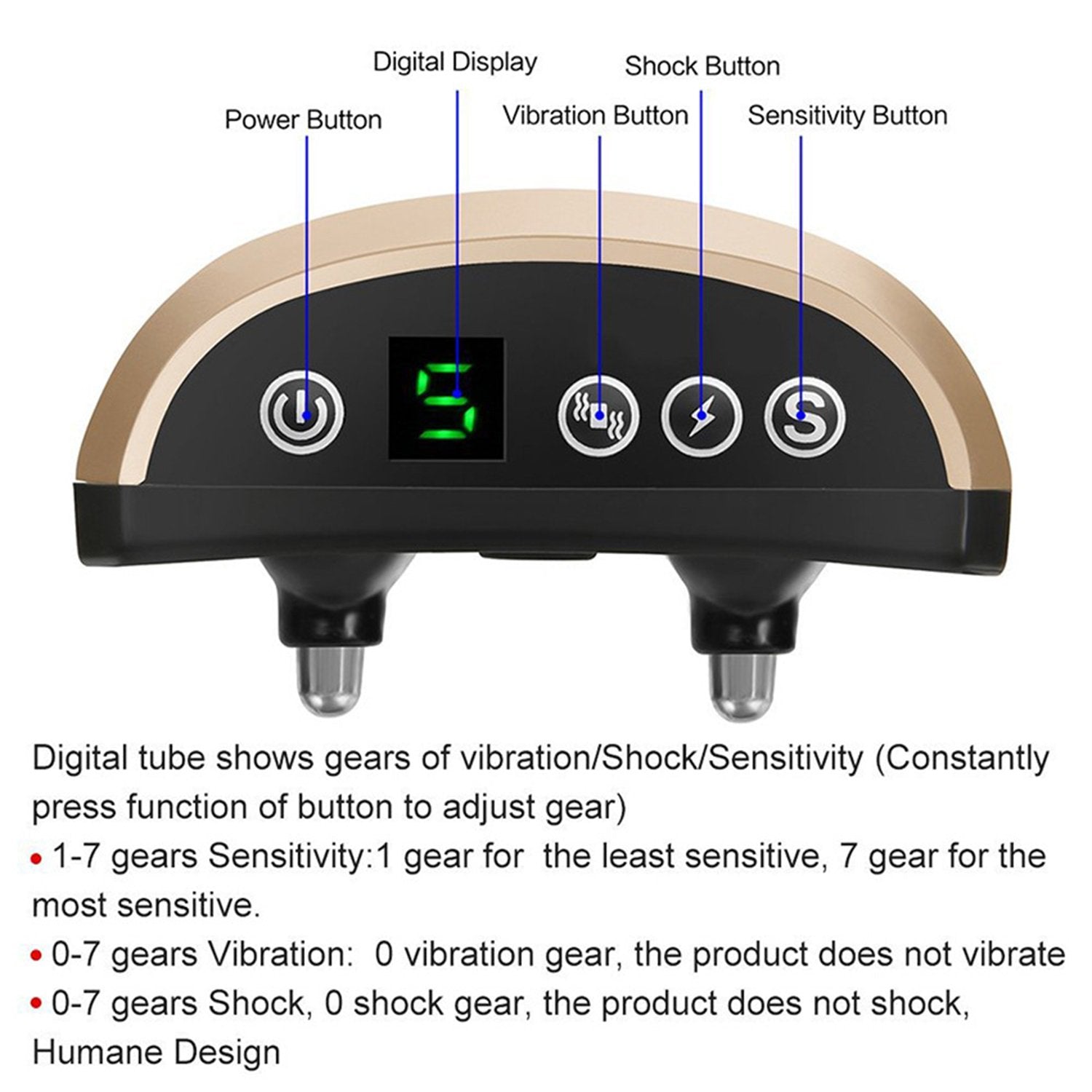 1. Function: ultrasonic + electric shock + sensitivity adjustment, charging + waterproof