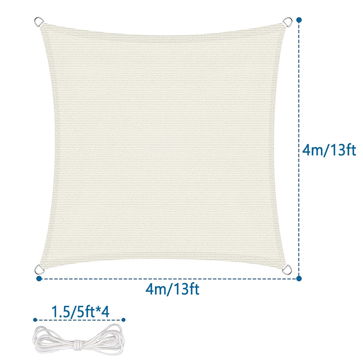 Outdoor Sun Shade Sail 13' x 13' Waterproof Rectangle Sun Shade Sail 95% UV Resistant Yard Garden Canopy Shelter for Patio and Outdoor Carport
