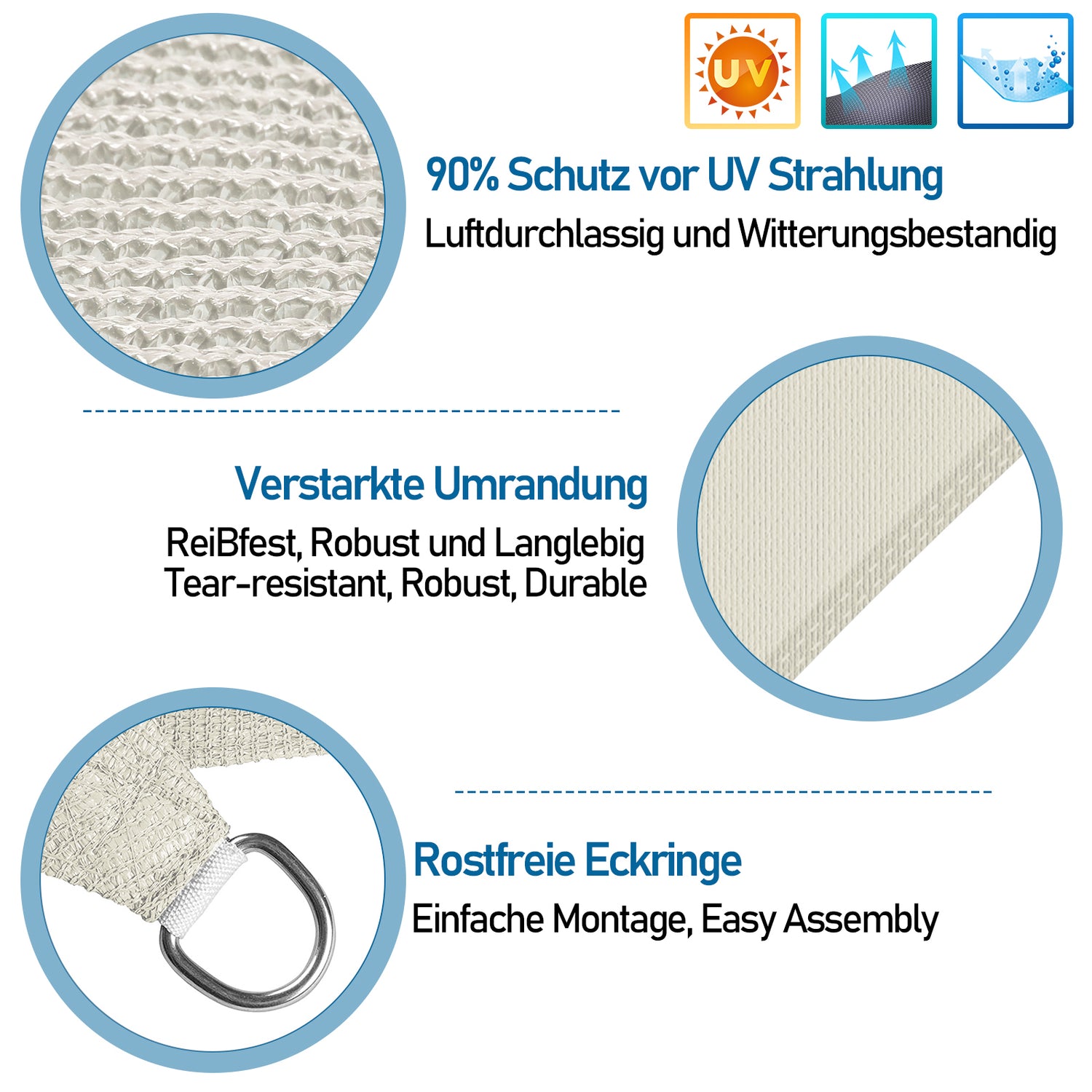 High Quality Material: Shade sail is made of 185 gsm UV resistant high density polyethylene. It can block up to 95% of UV rays and direct sunlight, while effectively reducing heat and protecting the skin