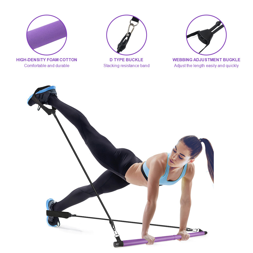Protable Pilates bar kit support you to work out anywhere & anytime Our Pilates bar set can help you shape your body and build strong and lean muscles while saving you money spent on gym membership.